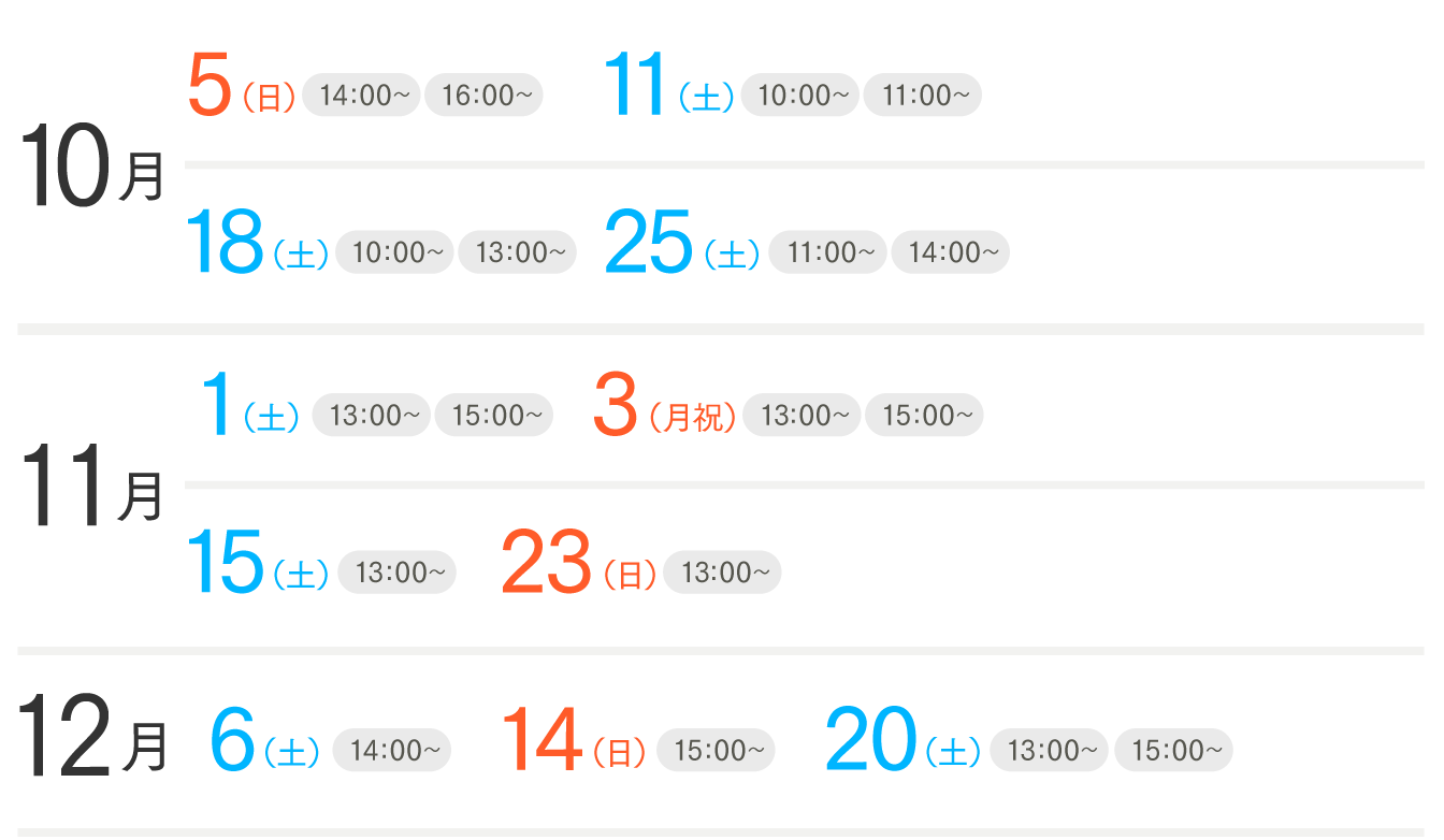 花嫁衣裳を試着+相談会を下記の日程にて開催しています。お問い合わせフォームよりご予約ください。
